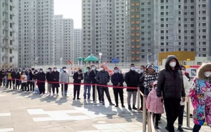 Em Tianjin, há grandes filas de pessoas esperando para fazer o teste de covid.