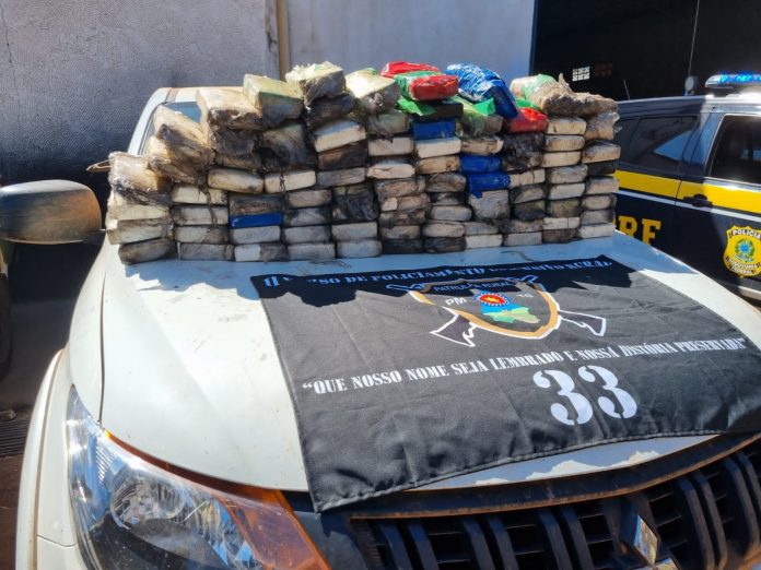 O suspeito portava um revólver calibre.38 e dentro do carro, durante revista, foram encontrados 81 tabletes de pasta base de cocaína escondidos em dois pneus, com cerca de 80 kg da droga. Ele também levava dois celulares e munições intactas e deflagradas. Todo o material foi apreendido e levado para a Polícia Civil de Guaraí.