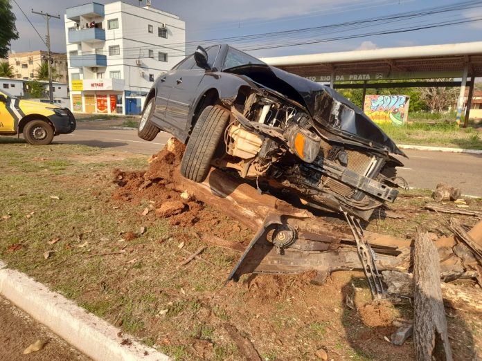 Após perder o controle da direção, um carro acabou atingindo uma árvore e indo parar em cima do tronco. O acidente aconteceu na tarde desta terça-feira (15) entre as arses 12 e 13, antigas 106 e 108 norte, e chamou a atenção de quem passava pela NS-6, em Palmas.