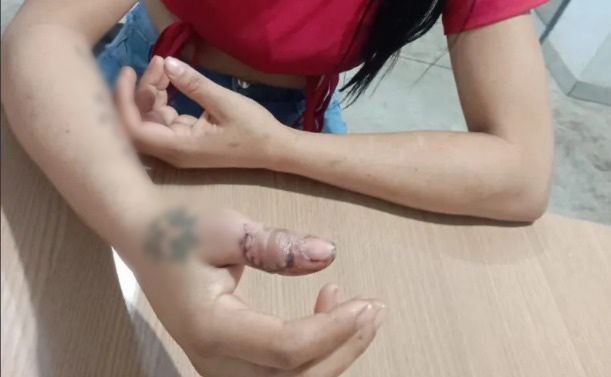 Vítima denunciou caso e medida protetiva foi concedida na tarde desta segunda-feira (14). Agressor não pode se aproximar da mulher a uma distância de 200 metros. Ferimento expôs o osso do dedo da vítima