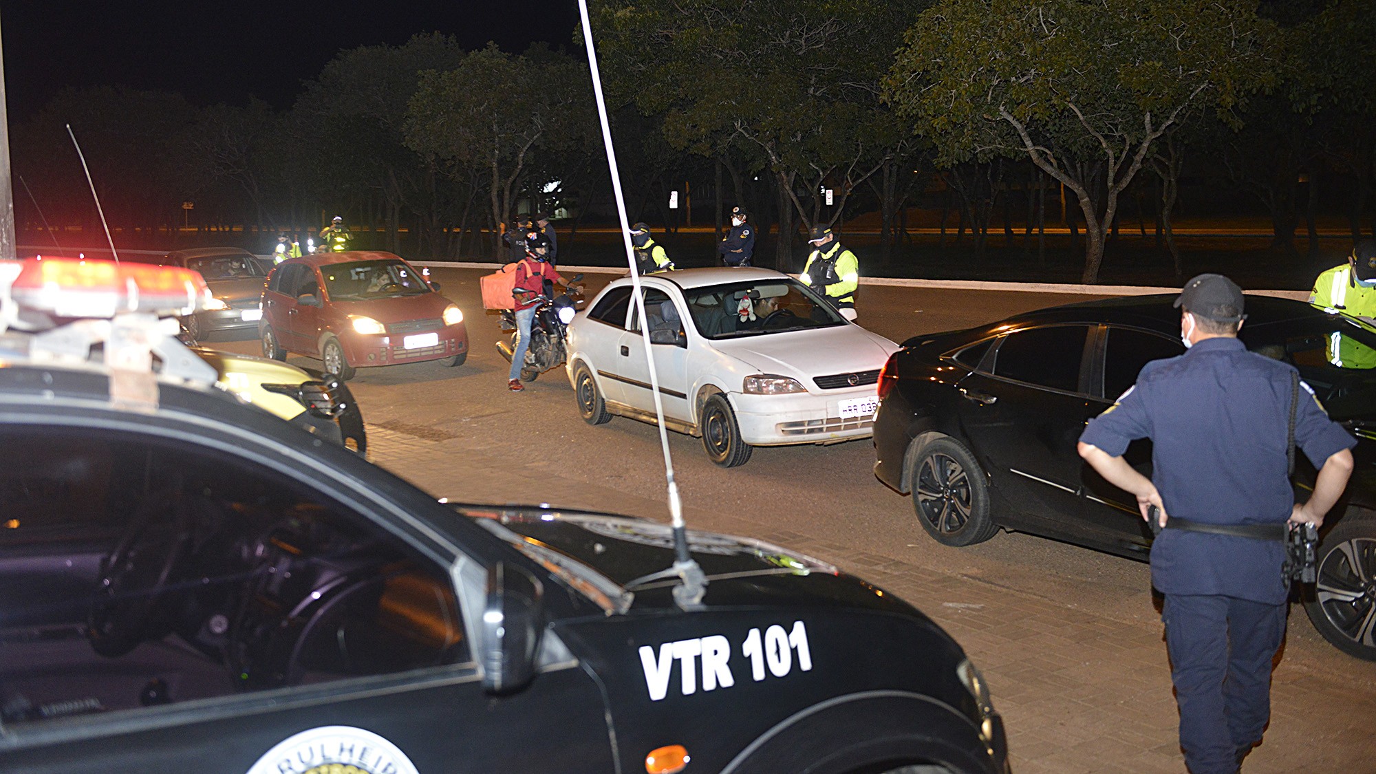 A maior parte das ocorrências registradas acabou sendo no trânsito. Nas blitz realizadas em vários pontos da Avenida Teotônio Segurado houve remoção de oito veículos e 19 condutores foram autuados.