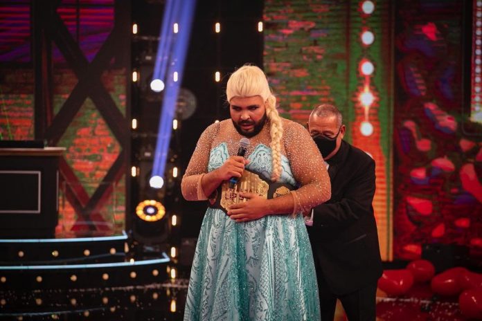 ‘Sei que joguei baixo, cada um usa as armas que tem’, brincou o humorista após conquista do quadro comandando por Luciano Huck. Paulo Vieira se transforma em Elsa e vence primeiro duelo da “Batalha do Lip Sync”