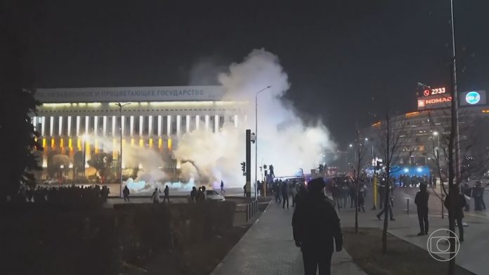 As piores cenas de violência foram vistas em Almaty, capital econômica do país. Houve saques a lojas, tiroteios nas ruas e edifícios públicos foram incendiados.