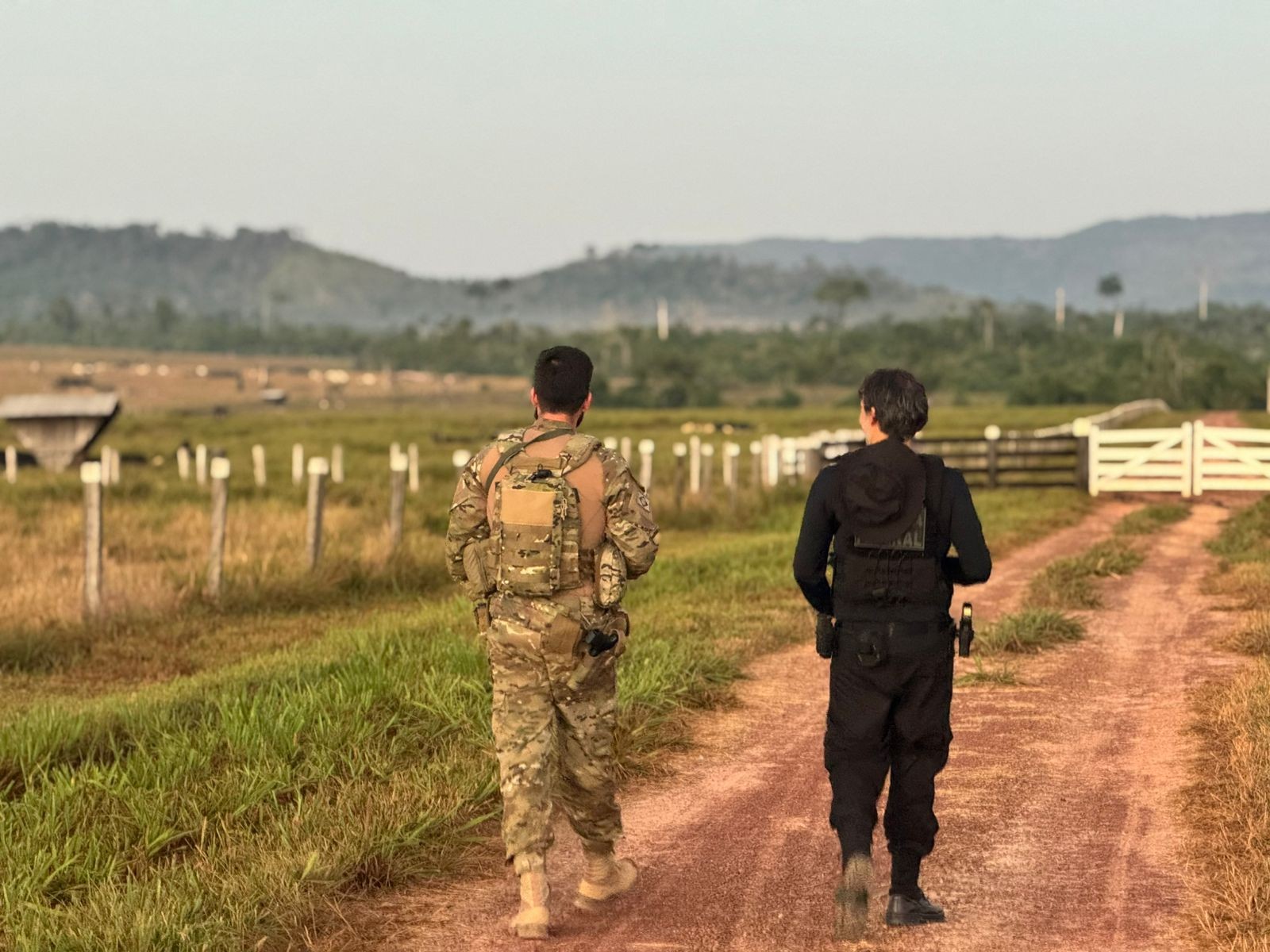 Policiais cumprindo mandado em propriedade rural