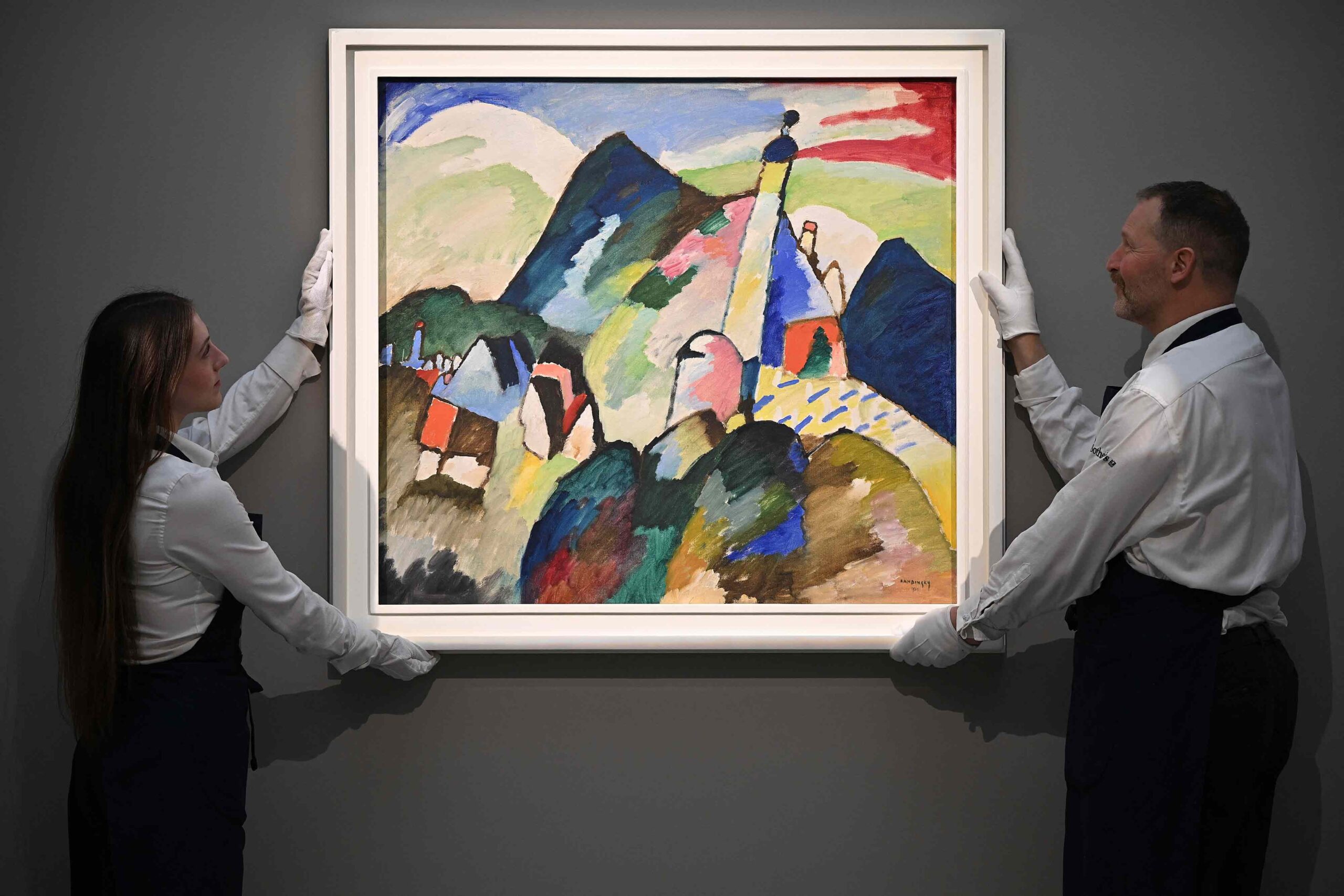 A pintura de Wassily Kandinsky, de aproximadamente um metro quadrado, está avaliada em US$45 milhões (cerca de R$ 232 milhões) e oferece uma visão colorida da cidade alemã de Murnau.