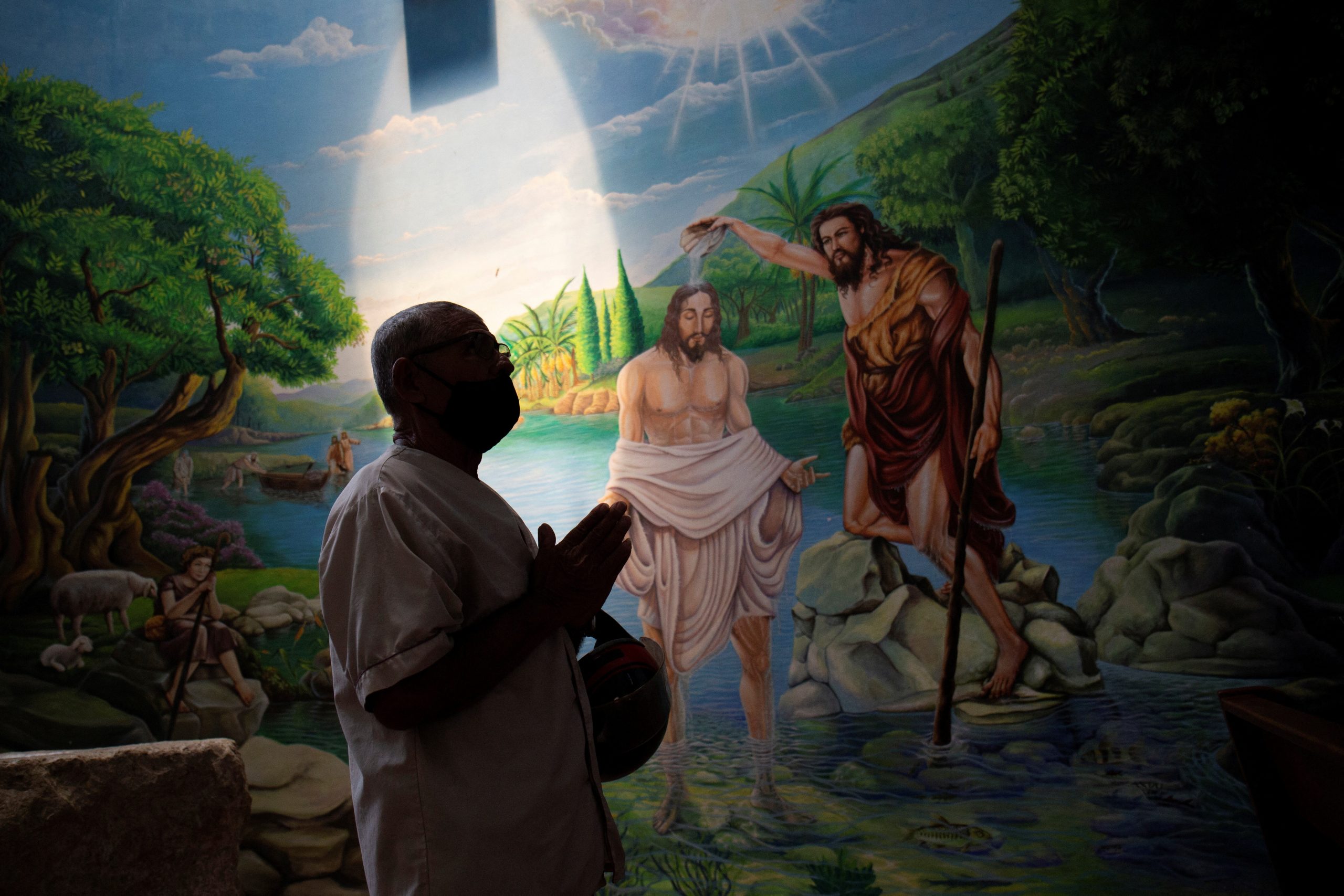 As relações entre a igreja católica e o governo da Nicarágua têm sido tensas desde que a igreja tentou servir como mediadora em 2018, após uma proposta de seguridade social apoiada por Ortega provocar protestos em todo o país. Homem reza na catedral metropolitana de Manágua, na Nicarágua