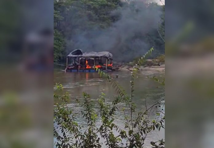 Balsa clandestina usada em garimpo foi destruída pela polícia