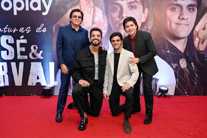 Chitãozinho e Xororó com os atores que interpretam os irmãos na série “As Aventuras de José & Durval”: Rodrigo Simas, Felipe Simas, Pedro Tirolli e Pedro Lucas