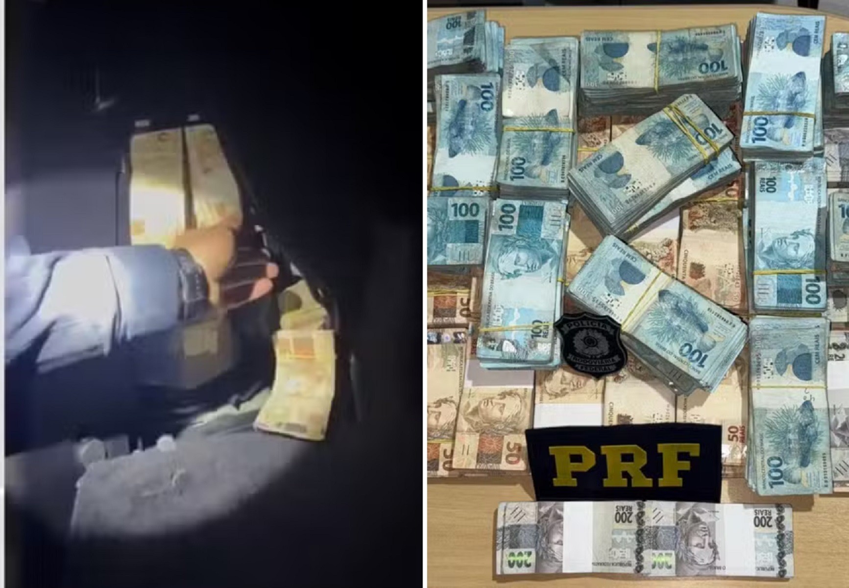Um vídeo gravado pela PRF mostra o momento em que as cédulas são encontradas dentro do porta-malas, em uma maleta e outros compartimentos do veículo.