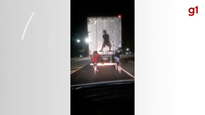 Um vídeo feito na BR-153 em Araguaína, no norte do Tocantins, mostra um homem escalando um caminhão em movimento. Outros dois jovens estavam em bicicletas, agarrados ao para-choque do veículo fazendo manobras arriscadas.